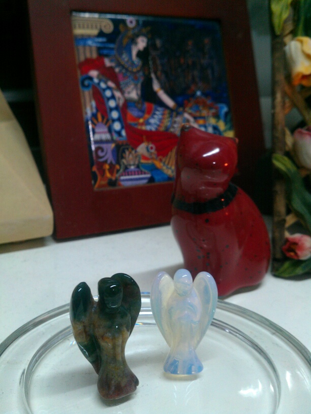 小羊說她幫我問天使時,兩個天使都「超雀躍」說要來我家;Clair問的時候,有一個天使就說他不能跟Clair走。後來我和Clair聊,才發現我po完照片時,她正在外面,整天沒上網,但就那一刻手癢上了臉書,第一個就看到我貼的照片;後來她在猶豫要帶幾個天使回家時,最後一個收的,就是那個不能跟她走的綠天使。