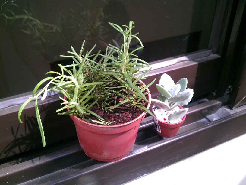 今天買的迷迭香(左)和小多肉(右)。
