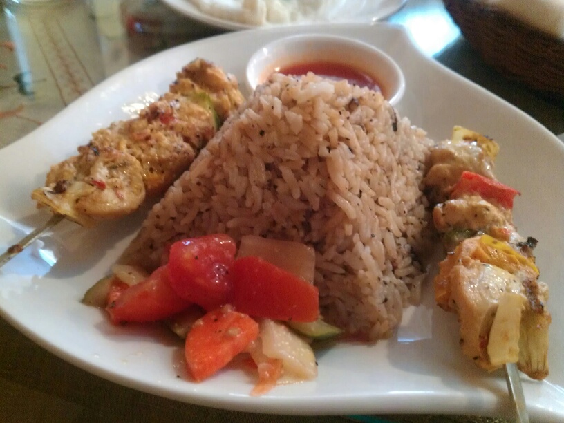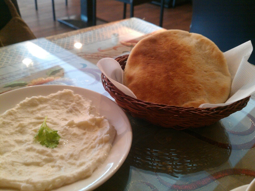 在臉書貼照片時,朋友就問我「埃及料理到底吃什麼?」我還以為看照片就知道了~ :P 其實我覺得埃及、印度料理都是以香料取勝,所以吃起來味道很不一樣。之前和朋友去東區吃印度料理,才知道什麼是真正的咖哩啊~長久以來我都以為像日式咖哩一樣呢,原來印度咖哩微辣,配上烤雞腿、西米露很match。埃及料裡在我吃烤雞肉串感受最深,可能那天實在累了,雖然味道覺得特別,可是具體卻不知道該怎麼形容。堆成金字塔的飯有拌一點料,清淡,配上重口味的肉串還不錯。